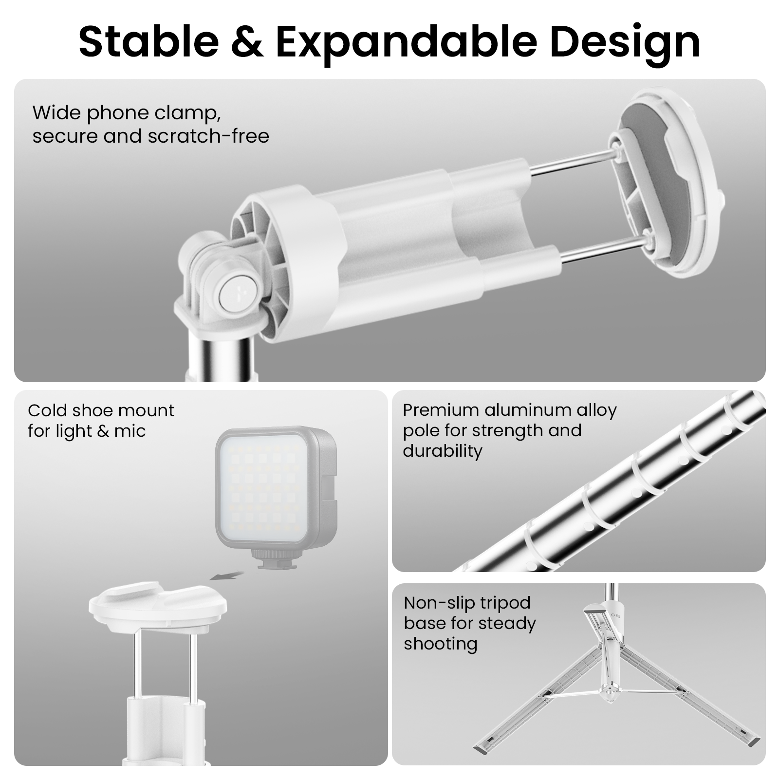 【Reliable Stability with Non-Slip Silicone Foot Pads】 Built with a wide-leg tripod structure and anti-slip silicone pads, PS13 delivers dependable stability on flat surfaces, helping you maintain clear, shake-controlled footage during everyday use.
