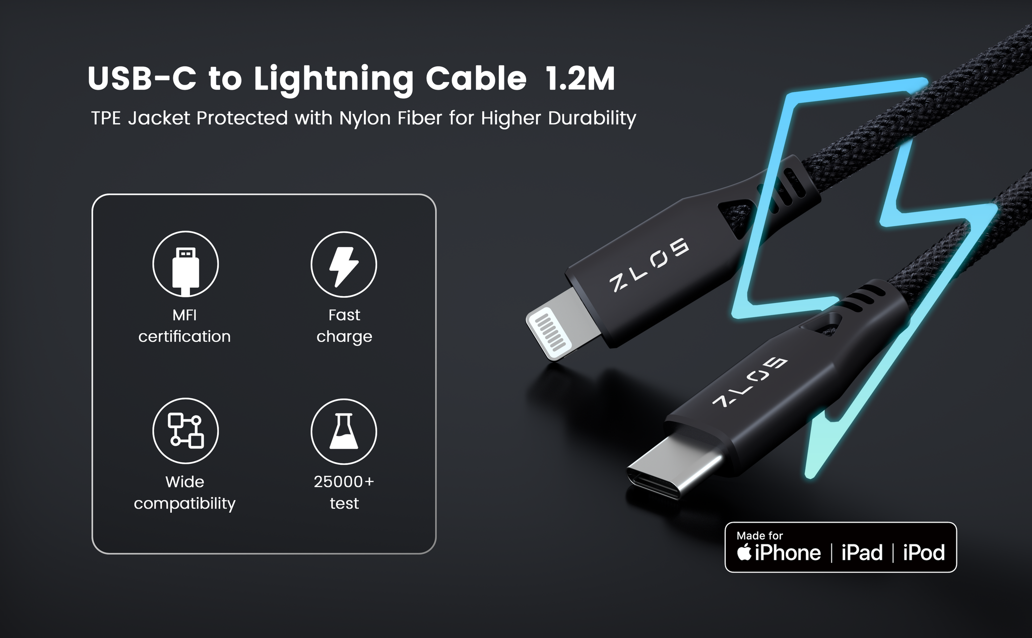 Dieses Kabel hat den strengen Testprozess der MFi-Apple-Zertifizierungsstandards bestanden und kann sicher und zuverlässig mit Ihren Apple Lightning-Geräten verwendet werden.