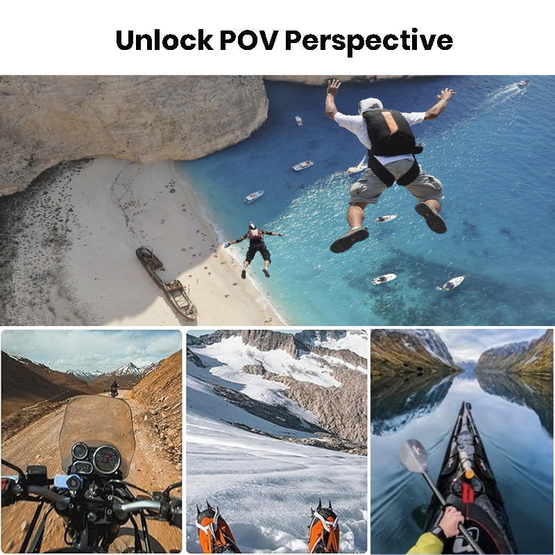 The included strap can be worn on the neck, head, arms, etc. The Velcro allows for quick adjustment to fit different body types. When cycling, it can be worn on the arm to shoot first-person views; when skydiving, it can be fixed with a head strap to shoot extreme scenes.