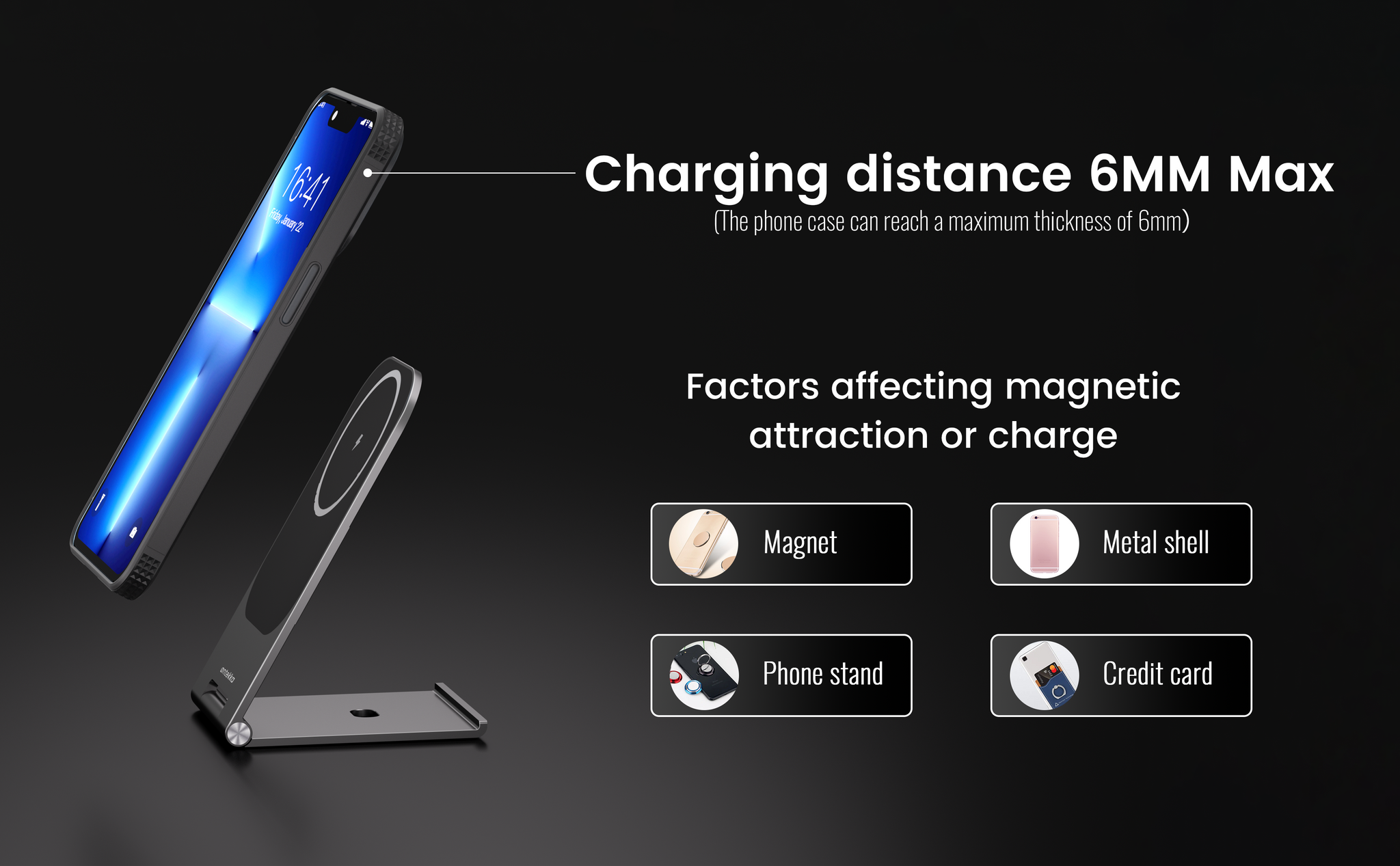 A 15W max output allows for a fast charging experience that’s compatible with all wireless enabled magnetic mobile devices.