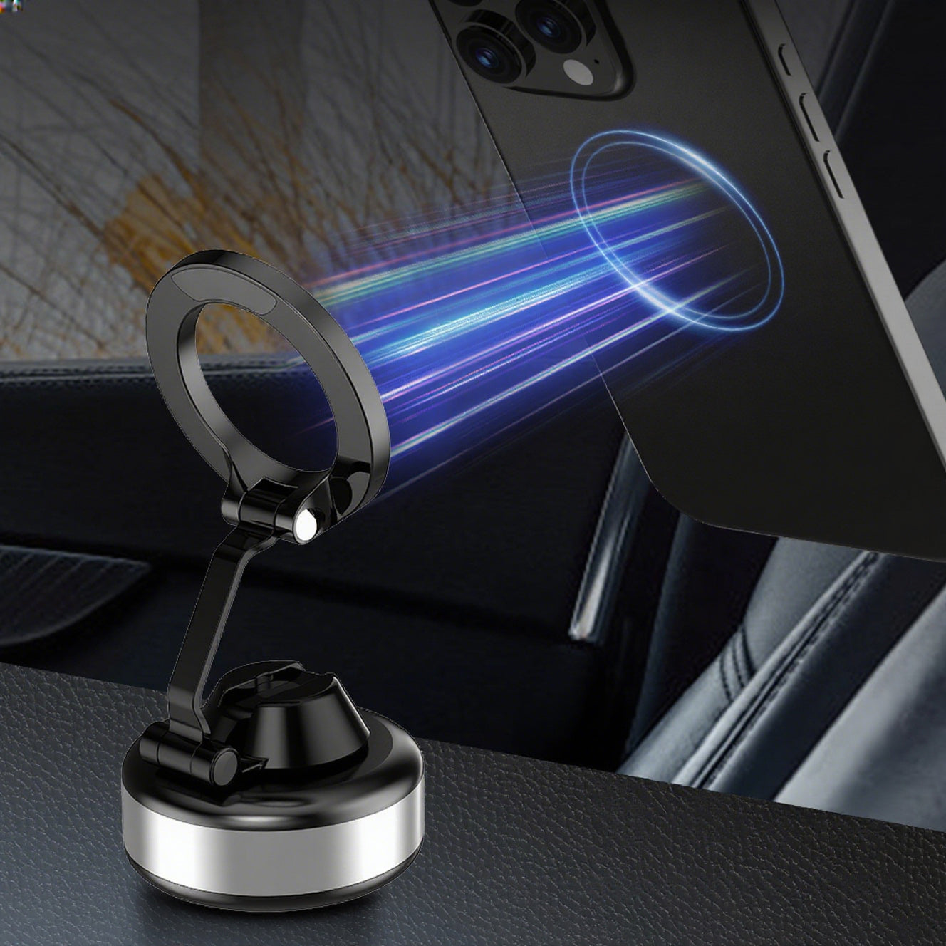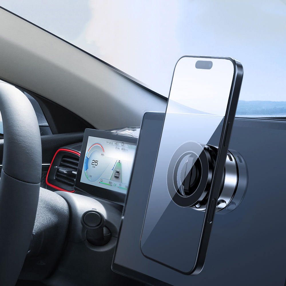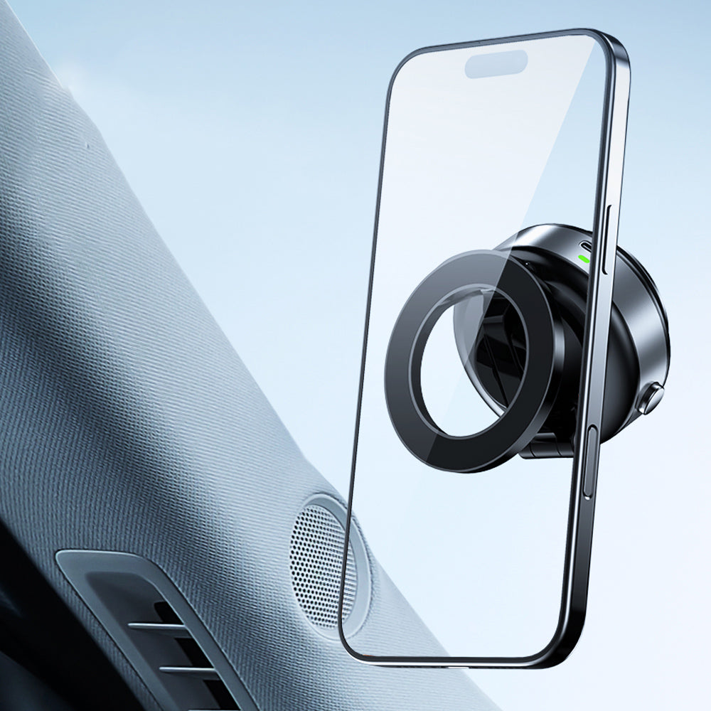 Dual N52 magnetic rings hold your phone securely while the motorized vacuum base attaches firmly to your car, keeping your device perfectly stable even at 120 km/h sudden braking or over city speed bumps. No wobble, no drop.