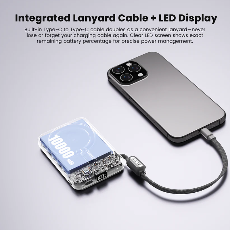 The ZLOS TS10 Portable Power Bank redefines on - the - go charging and device usage. Boasting a sleek, pocket - sized design (104×71×21mm, approx. 223g), it packs a 10000mAh lithium - polymer battery (5000mAh×2 cells) with a 6000mAh (5V/2A) rated capacity, enough to charge most smartphones 1.5 - 2 times. It integrates a 360° rotating kickstand for hands - free viewing at any angle, whether for movies, calls, or reading. Charging options are versatile: USB - C port (35W fast charging, PD/QC/PPS/FCP/AFC/Apple 2.4A compatible), built - in braided USB - C cable, 22.5W max USB - A output, and wireless charging pad (2.5W/7.5W/10W/15W). With a premium ABS+PC case, soft - touch anti - slip finish, and battery level light indicator, it's perfect for travelers, commuters, students, and anyone seeking compact, wireless convenience.