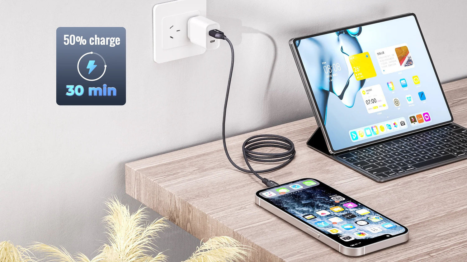 ZLOS MA20 Power Bank, with a 20000mAh capacity, meets all-day power needs—great for trips or long work hours. Its 65W fast charging gets phones to 50% in ~30 minutes. The built-in lanyard-cable design skips cable hunting, and its compact portability lets you charge anytime, anywhere, keeping you connected.
