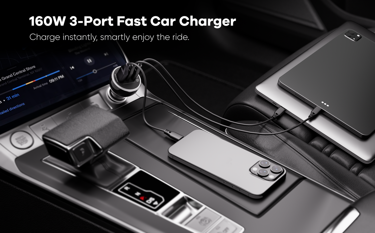 100W GaN 3-Port USB-C USB-A Fast Charger